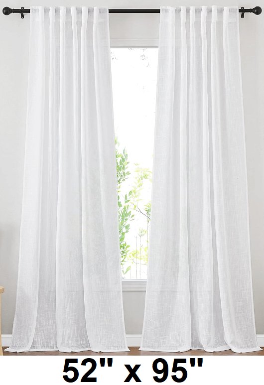 (2 panel) nicetown sheer linen pole pocket curtains - 52" x 95" - white