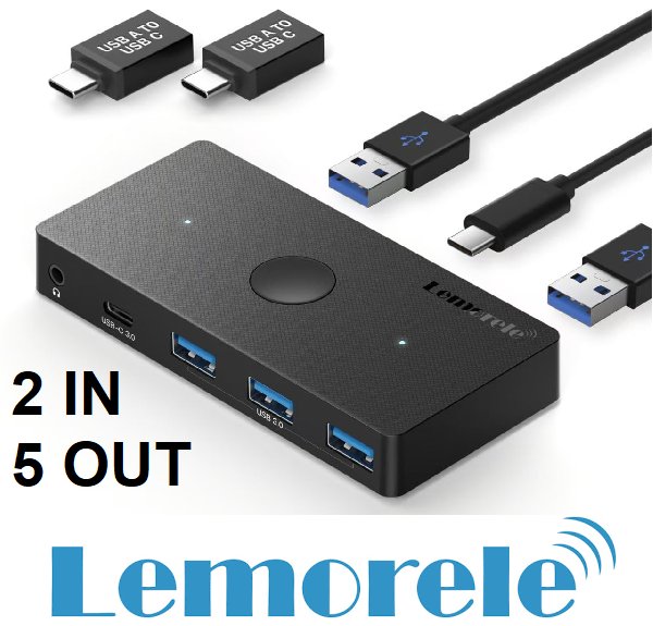 Lemorele USB 3.0 Switch box - 2 in/5 out - black - (model: h100)