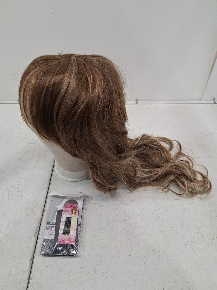 women's wavy wig with bangs - weaving cap and hairpins - 24" - dirty blonde/light blonde