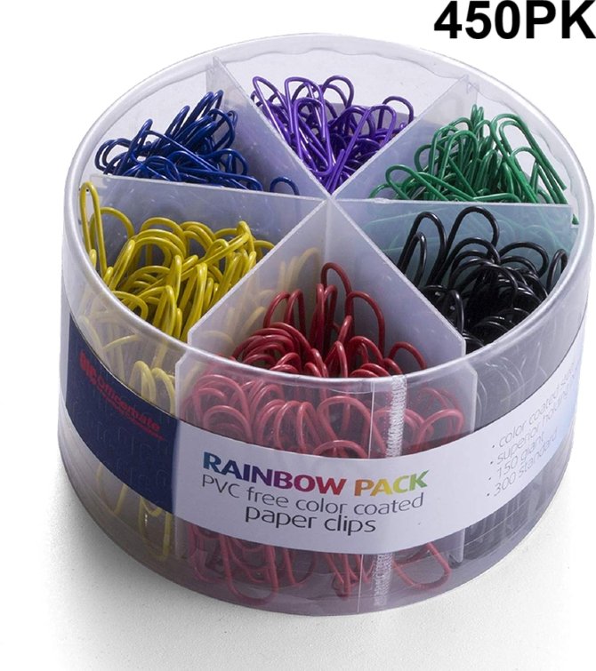 450PK Officemate PVC Free Color Coated Paper Clips- rainbow colors