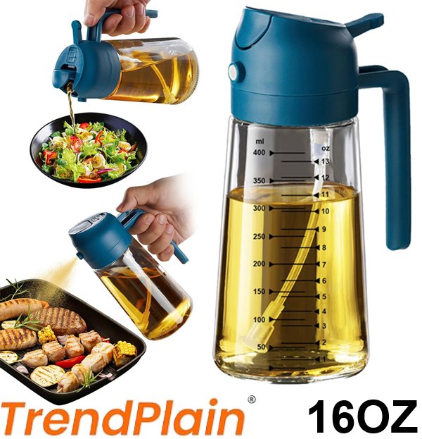 TrendPlain Olive Oil Spray and dispenser bottle - 16oz - BLUE (MODEL: Ver001)