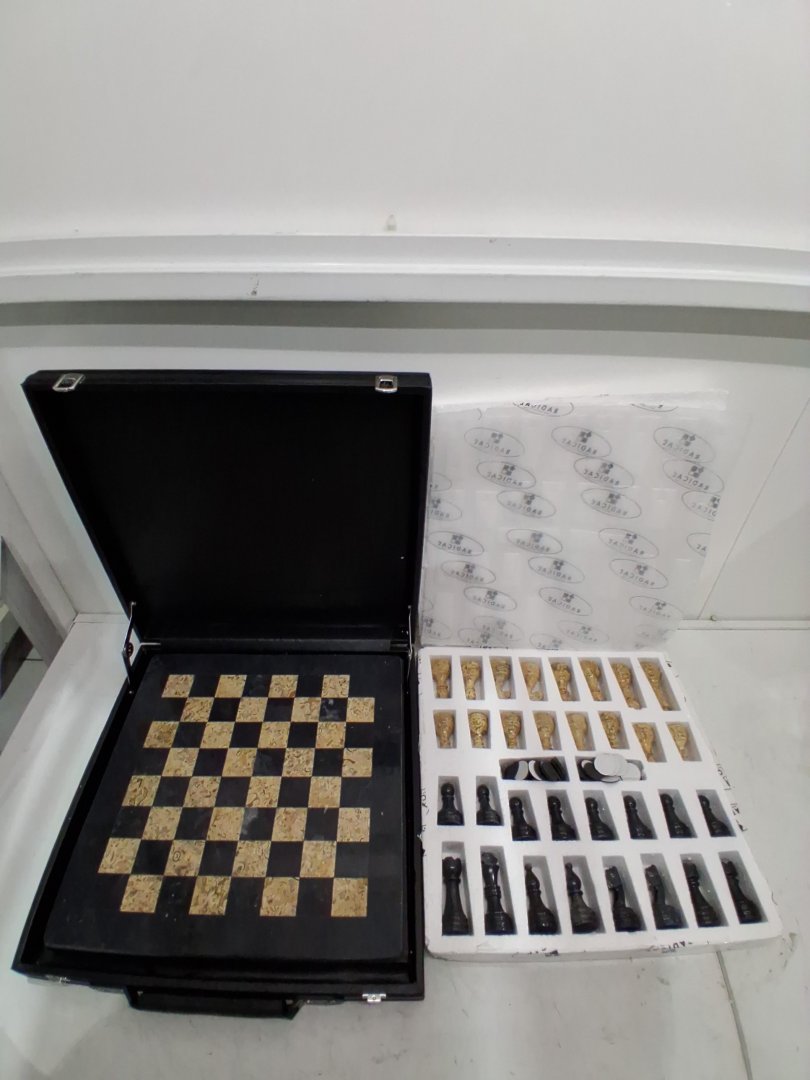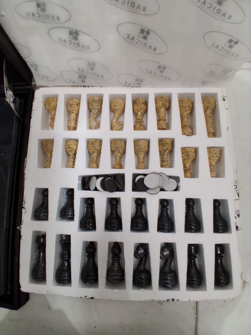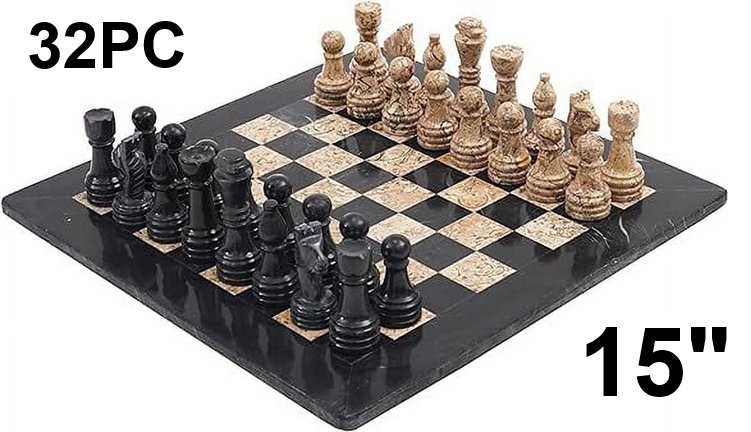 32PC Radicaln Handcrafted Luxury Marble Chess Set with Case - 15" - Black/Coral