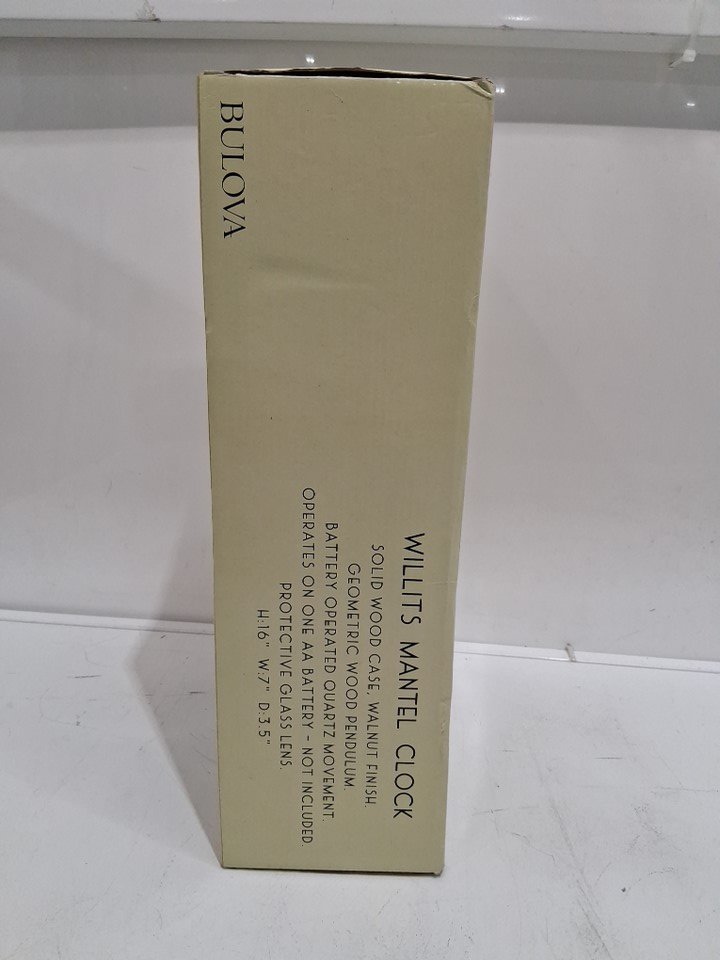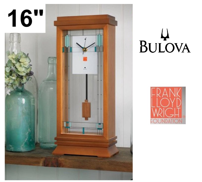 BULOVA WILLITS FRANK LLOYD WRIGHT MANTEL CLOCK - 16" - WALNUT FINISH - (MODEL: B1839)
