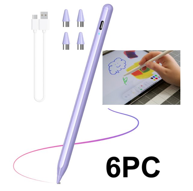 6PC ACTIVE Capacitive SUPERFINE NIB STYLUS Pen for TABLET Coloring - purple/lavender
