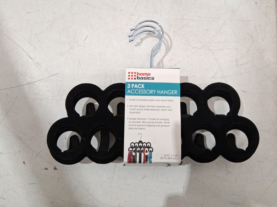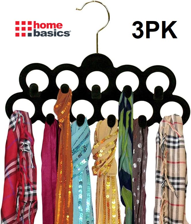 3pk Home Basics Velvet Scarf Hanger with Hooks - black (model: fh01455)