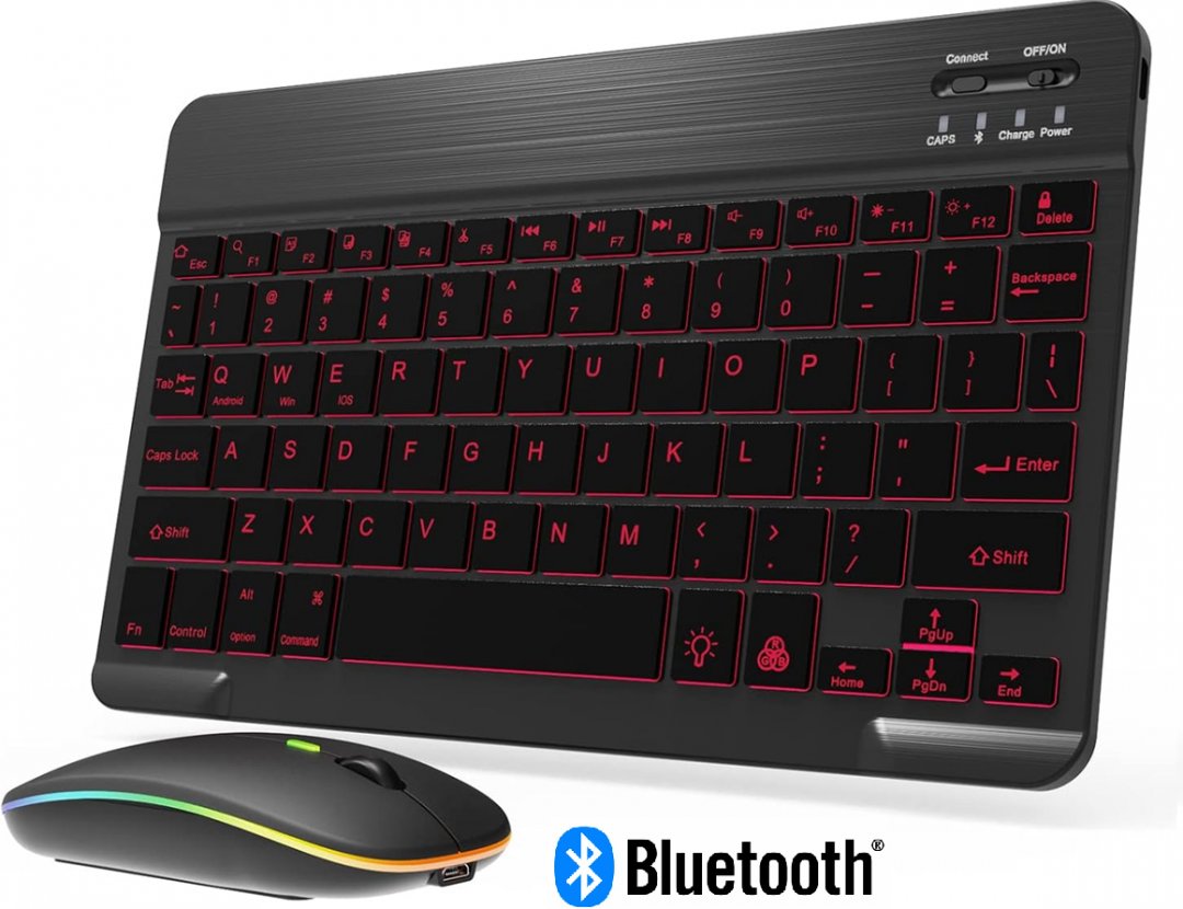 Tayderley Backlit Bluetooth rbg light up Keyboard and Mouse Combo - compatible for iPad, Air Pro Mini Tablet, iPhone/Android phone - black