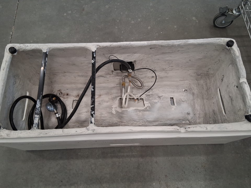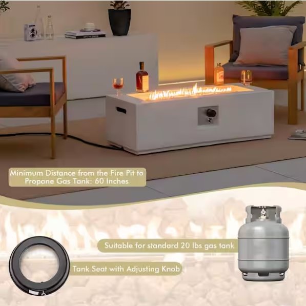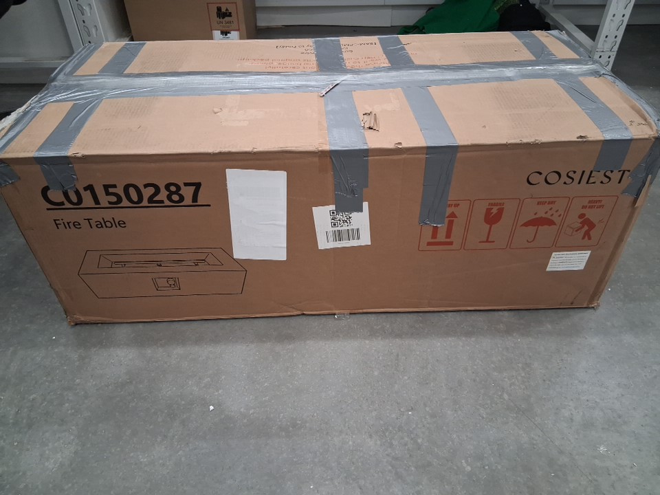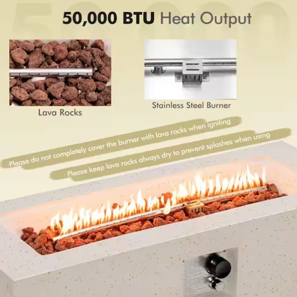 Please be aware that this listing does not include a cover for the table, only the table, tank seat, and lava rocks as pictured. The burner has some scorch marks on it indicating some previous use, but there appears to be no damage or other issues with any part of the table. Additionally, the packaging for the lava rocks opened during shipping, resulting in them moving around inside the box getting dust and some shavings on the surface and underside of the table, but cleaning it should be as simple as giving the table a good wipe - see photos.