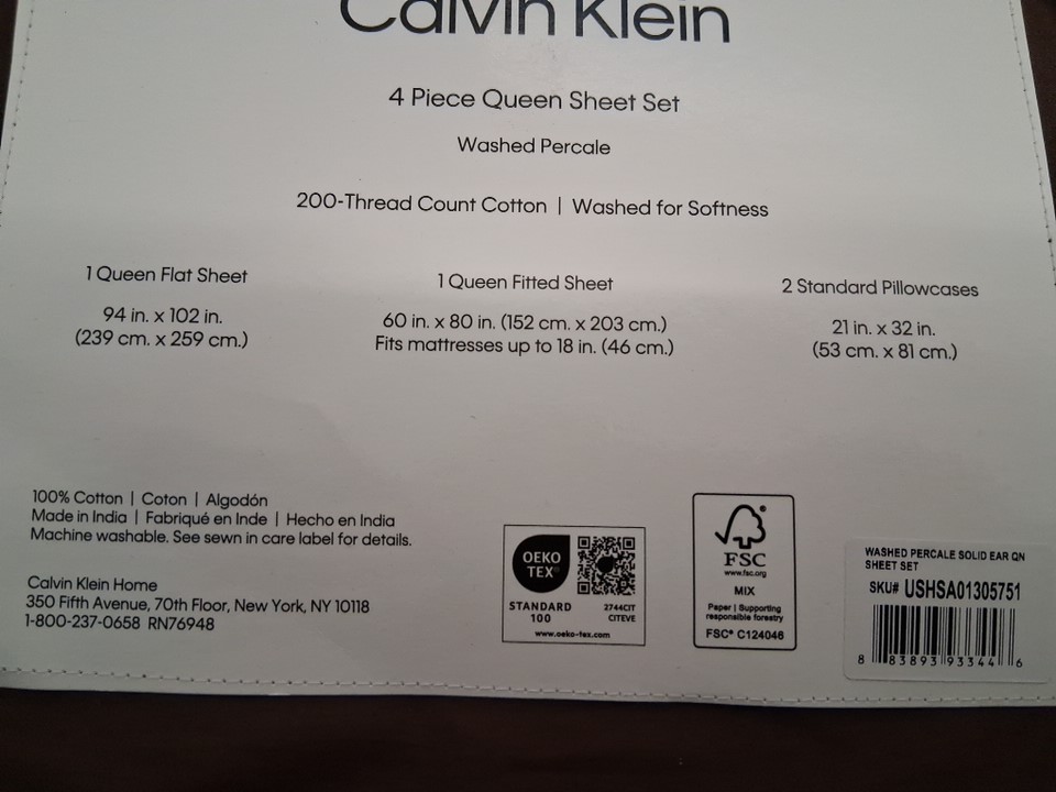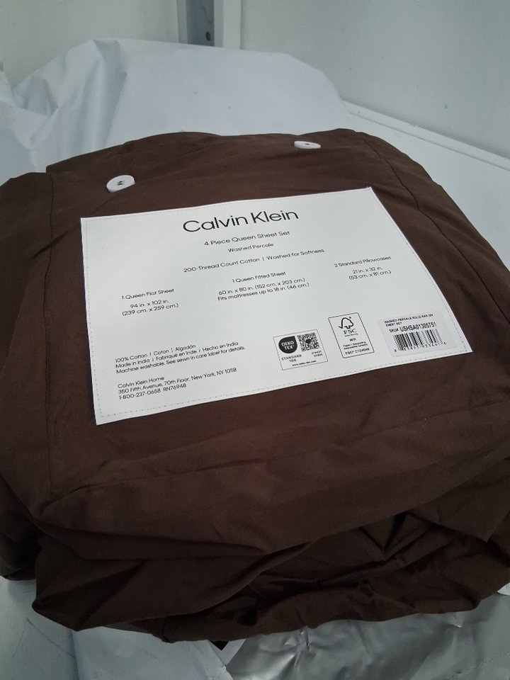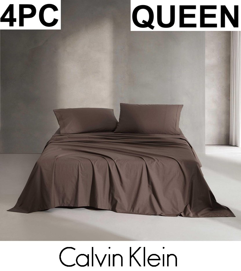 4PC Calvin Klein Washed Cotton Percale Sheet set - Queen - Earth Brown