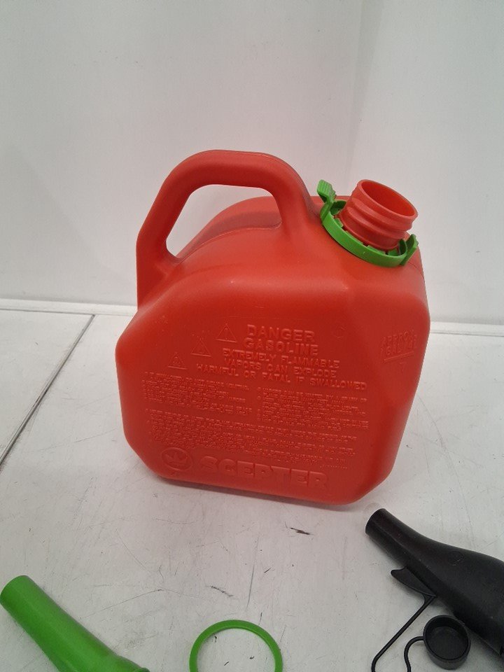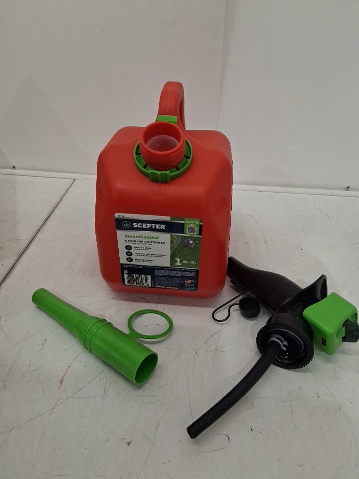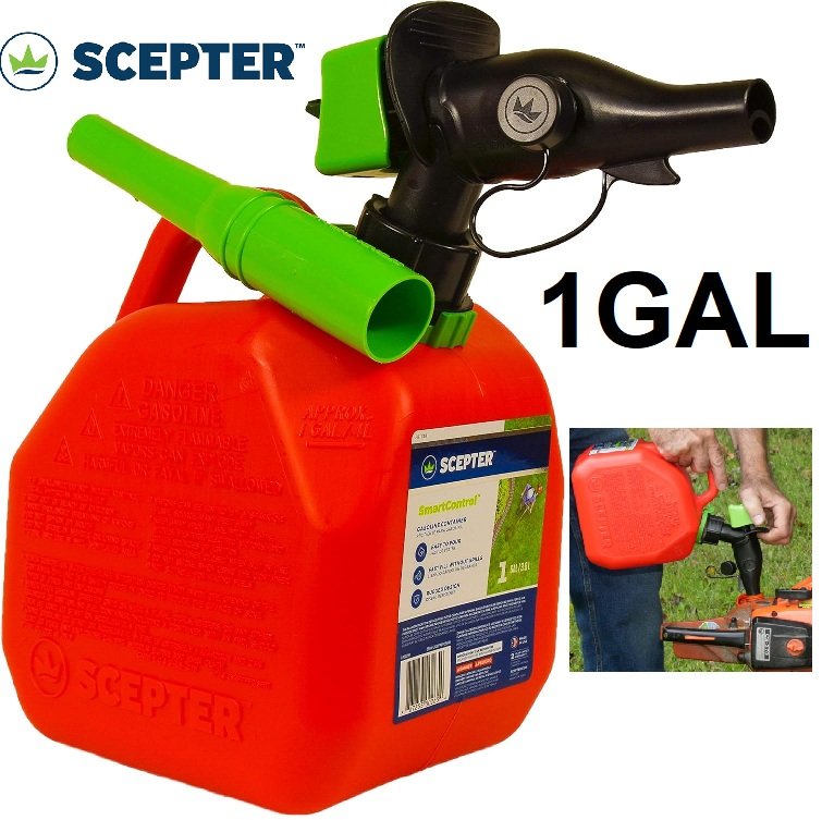 scepter Fuel Container with Spill Proof Smart Control Spout with Bonus Spout Extender - 1gal - red/black/green (model:FR1G152)