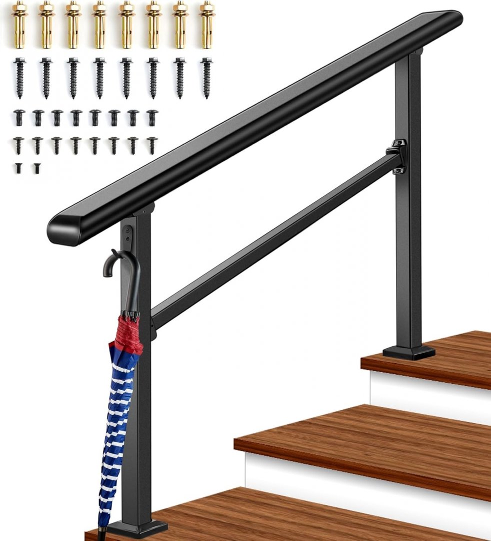 Gottinfurt Handrails for Outdoor Steps 3 Steps Versatile Stair Handrail Transitional Rail Porch Railing - BLACK (MODEL: ‎SH-301)