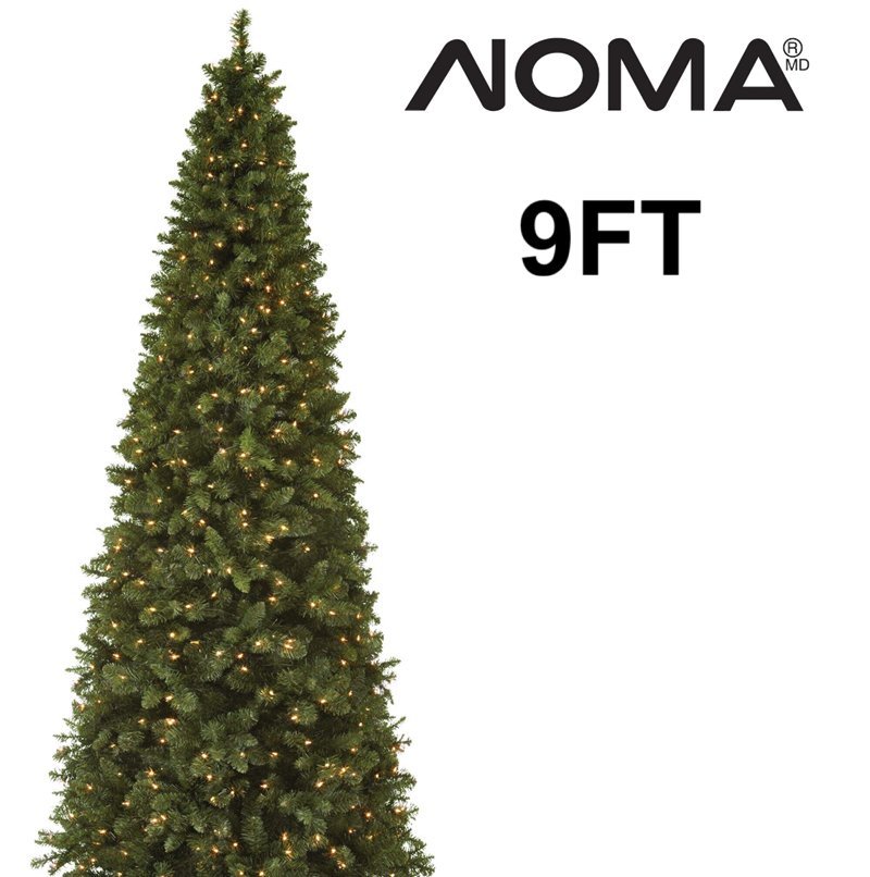 Noma prelit artificial hinged Christmas tree with metal stand - 9ft - green