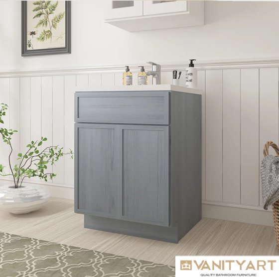 Vanity Art Birch Plywood Freestanding Single Base Storage Cabinet with Soft Close Door - 24" W - Smoky Gray - (Model: CVJ24-S)