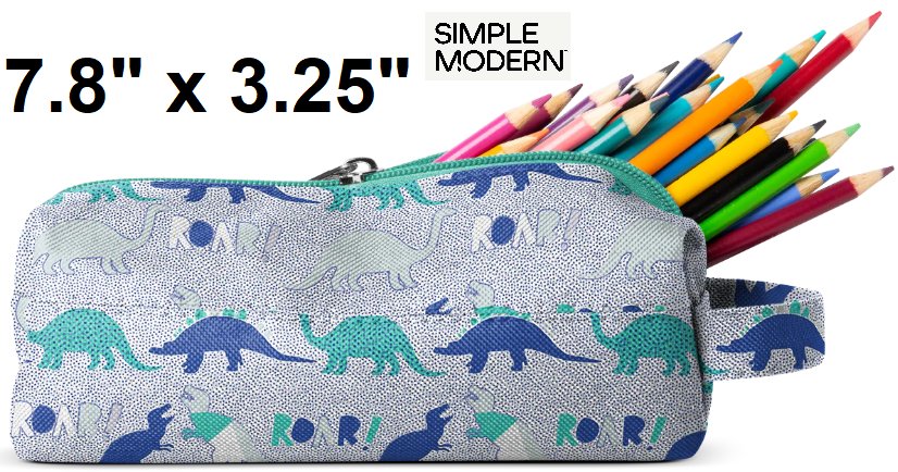 simple modern Hudson Pencil Bag case - 7.8" x 3.25" - dinosaur roar blue