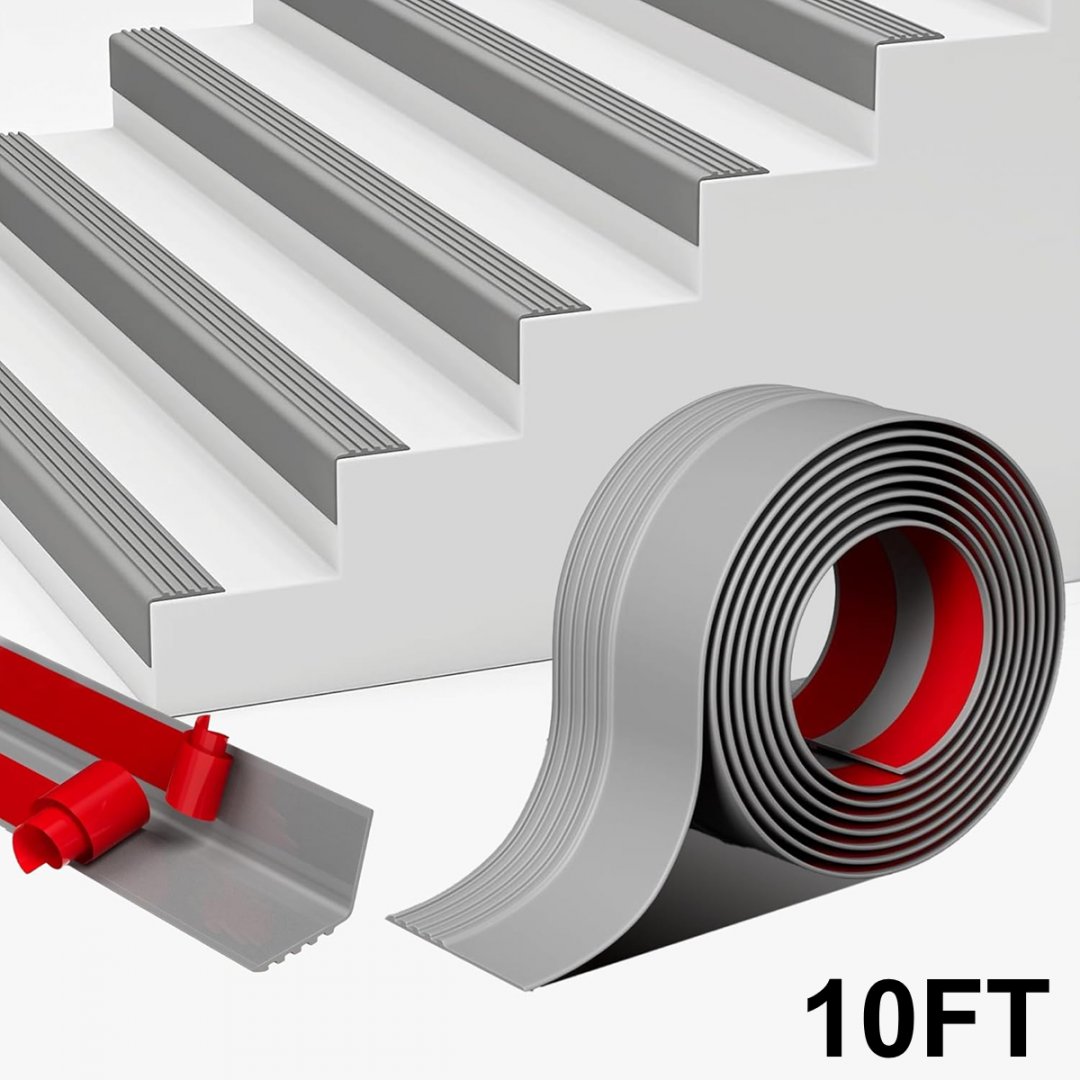 ktinitk adhesive VINYL nonslip STAIR NOSING, edge protection- 10FT - grey