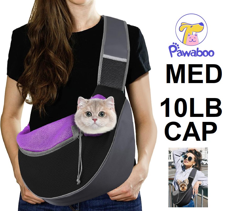 Pawaboo Dog/cat Sling Carrier - medium - 10lb capacity - purple
