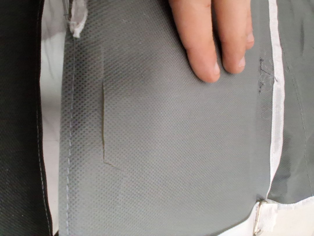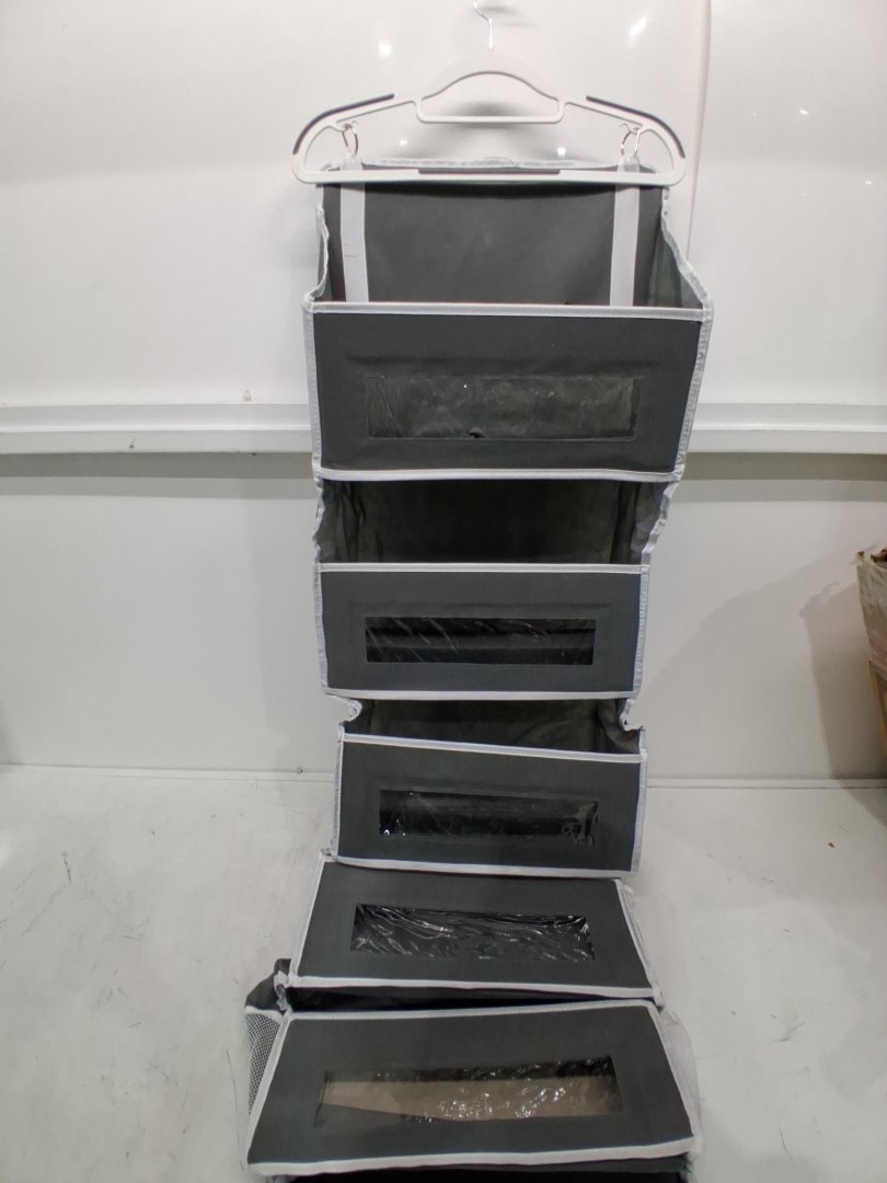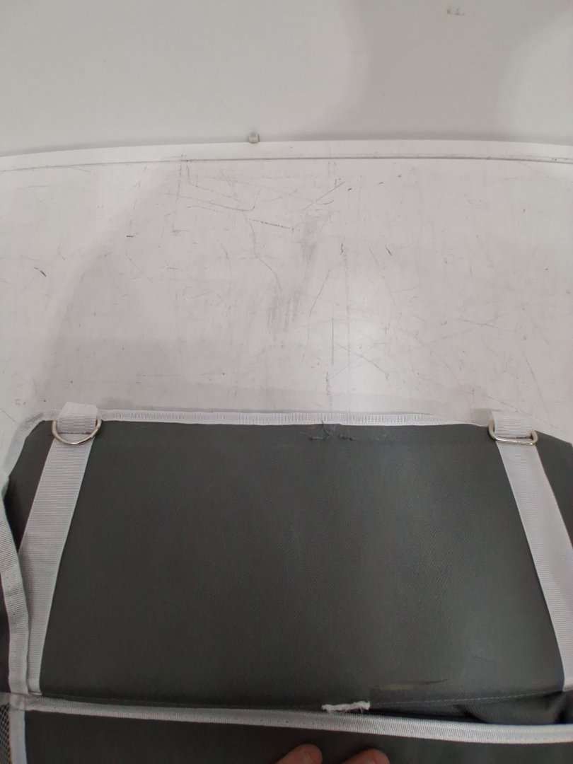 Missing the middle hanging strap and a slight tear on back of top bin.