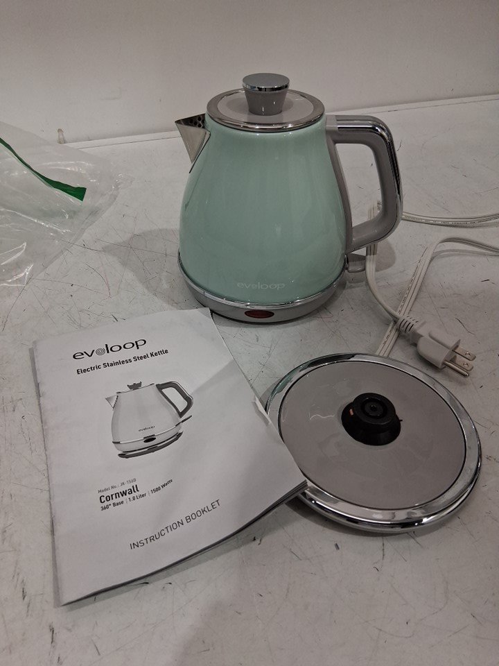 EVOLOOP ELECTRIC TEA KETTLE WITH AUTO SHUT OFF - 1L - 1500W - GREEN (MODEL: JK-1560)