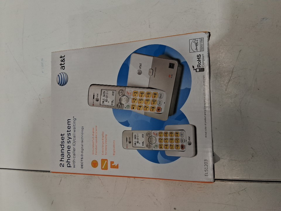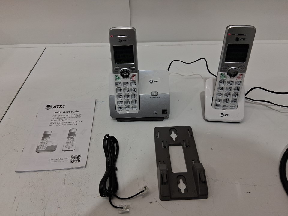AT&T DECT 6.0 2-HANDSET CORDLESS PHONES WITH CALLER ID & HANDSET SPEAKERPHONE - WHITE/SILVER (MODEL: EL51203)