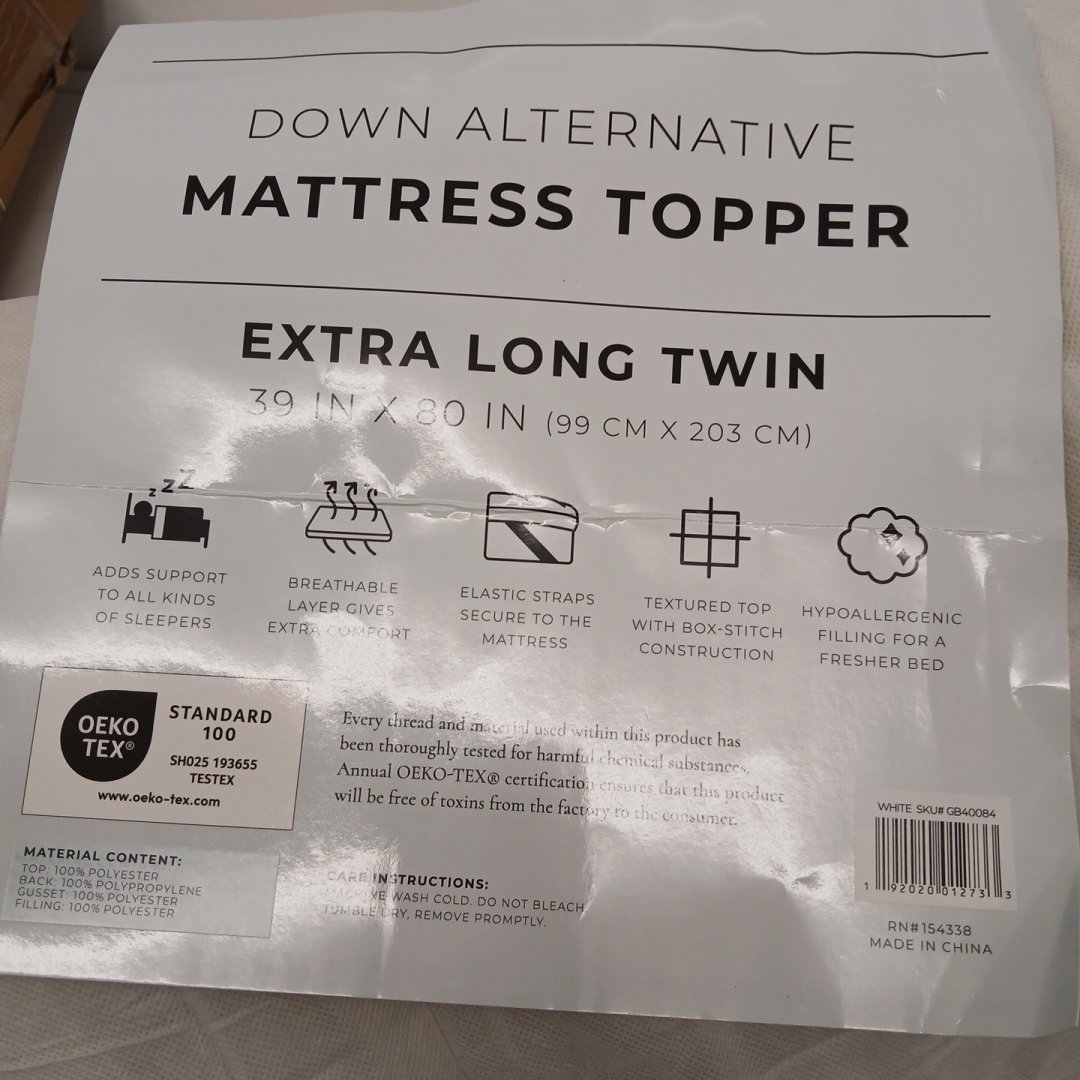 GREAT BAY HOME ULTRA-SOFT HOTEL QUALITY DOWN ALTERNATIVE MATTRESS TOPPER WITH ANCHOR STRAPS - 39" X 80" - EXTRA LONG TWIN, WHITE (MODEL: GB40084)