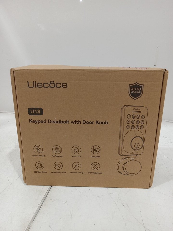 Ulecoce Keyless Entry Door Lock Deadbolt with Handle Set, Smart Door Knob, Auto Lock, Code Door Lock with Installation Guide - BLACK - (MODEL:U18)
