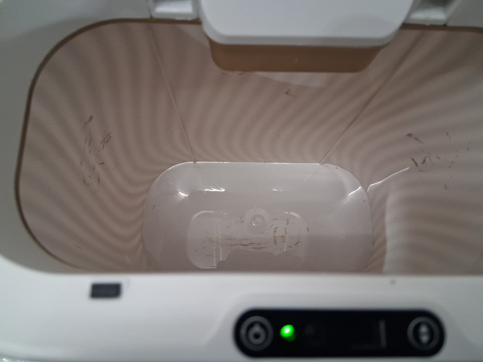 Trash can has scuff marks inside from lid rubbing during shipping, lid for batteries is missing