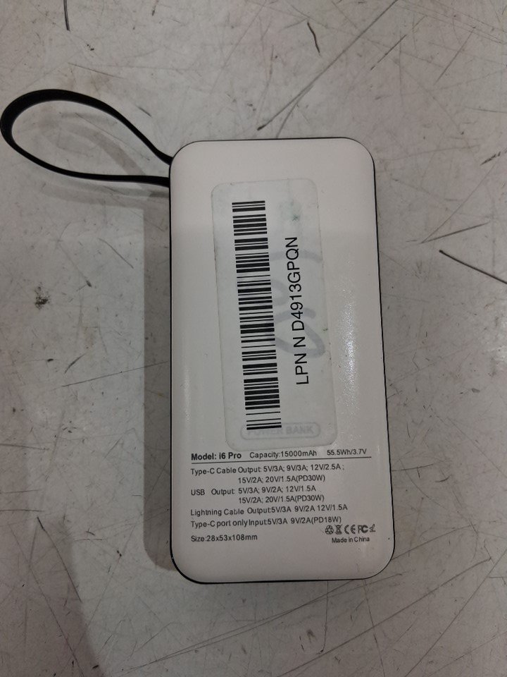 Portable FAST CHARGING Power Bank with type c and lightning bolt cable - 15000mah - white (MODEL: i6pro)