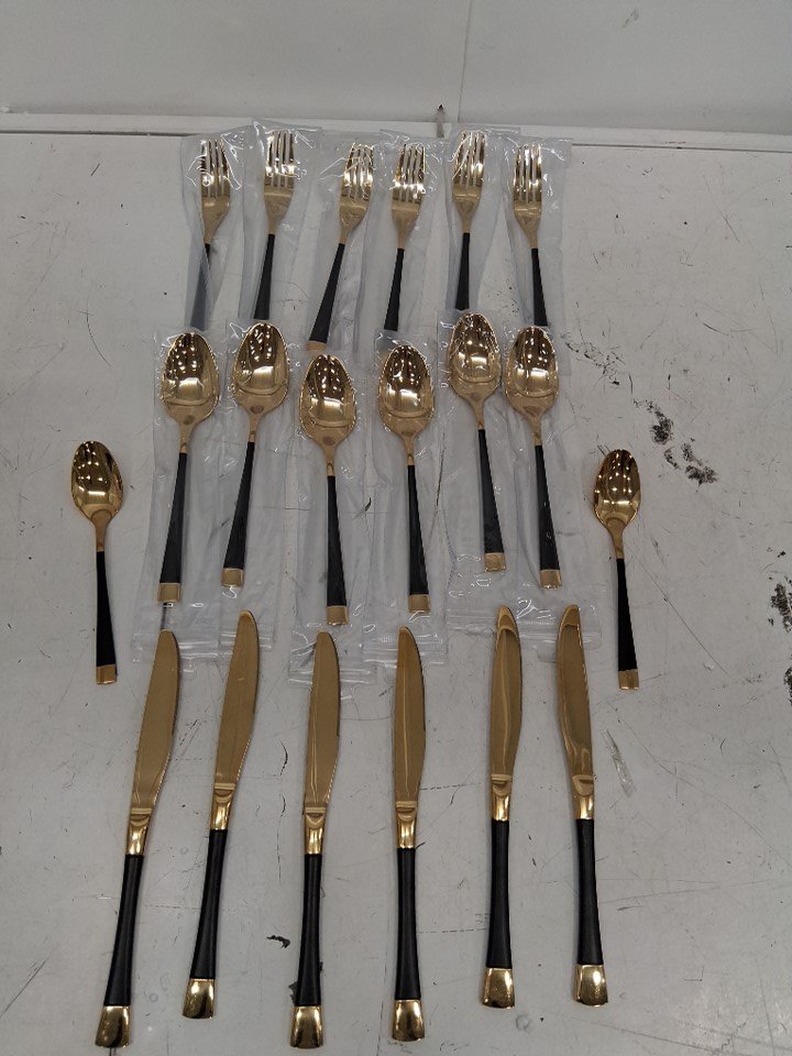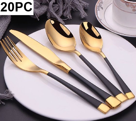20PC Mercer41 Ferkin Stainless Steel Flatware Set - 6 KNIFES 6TABLESPOONS 6 FORKS 2 TEASPOONS -GOLD/BLACK