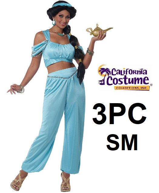 3PC women's california costume collections classic princess jasmine costume - SMALL - BLUE (STYLE: 5022-042)