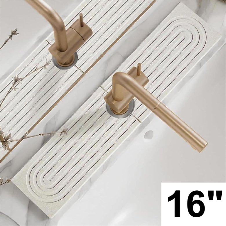 Kuyyfds Stone Fast Drying Faucet Mat for Kitchen Sink - 16" - 2.5" Faucet Hole - White