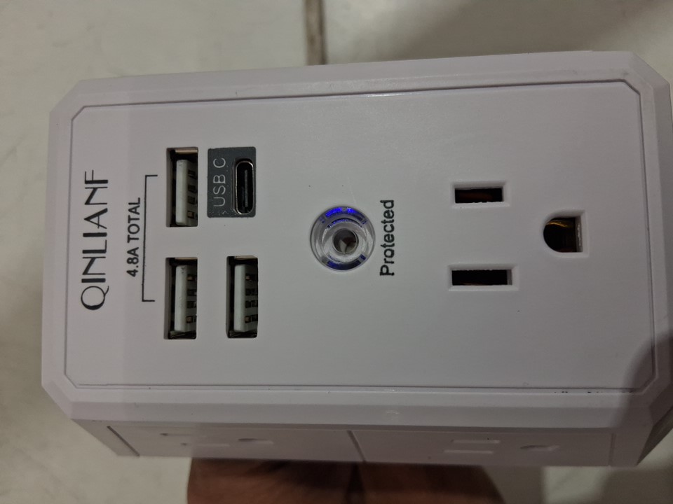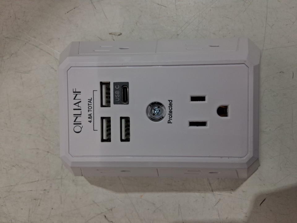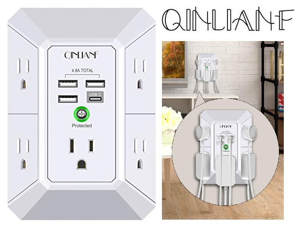 QINLIANF 5-OUTLET EXTENDER WITH 5 AC OUTLETS, 3 USB PORTS & 1 USB-C PORT - WHITE (MODEL: HR-519D)