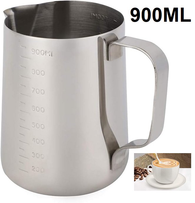 stainless steel frothing cup with pouring spout - 900ml - silver