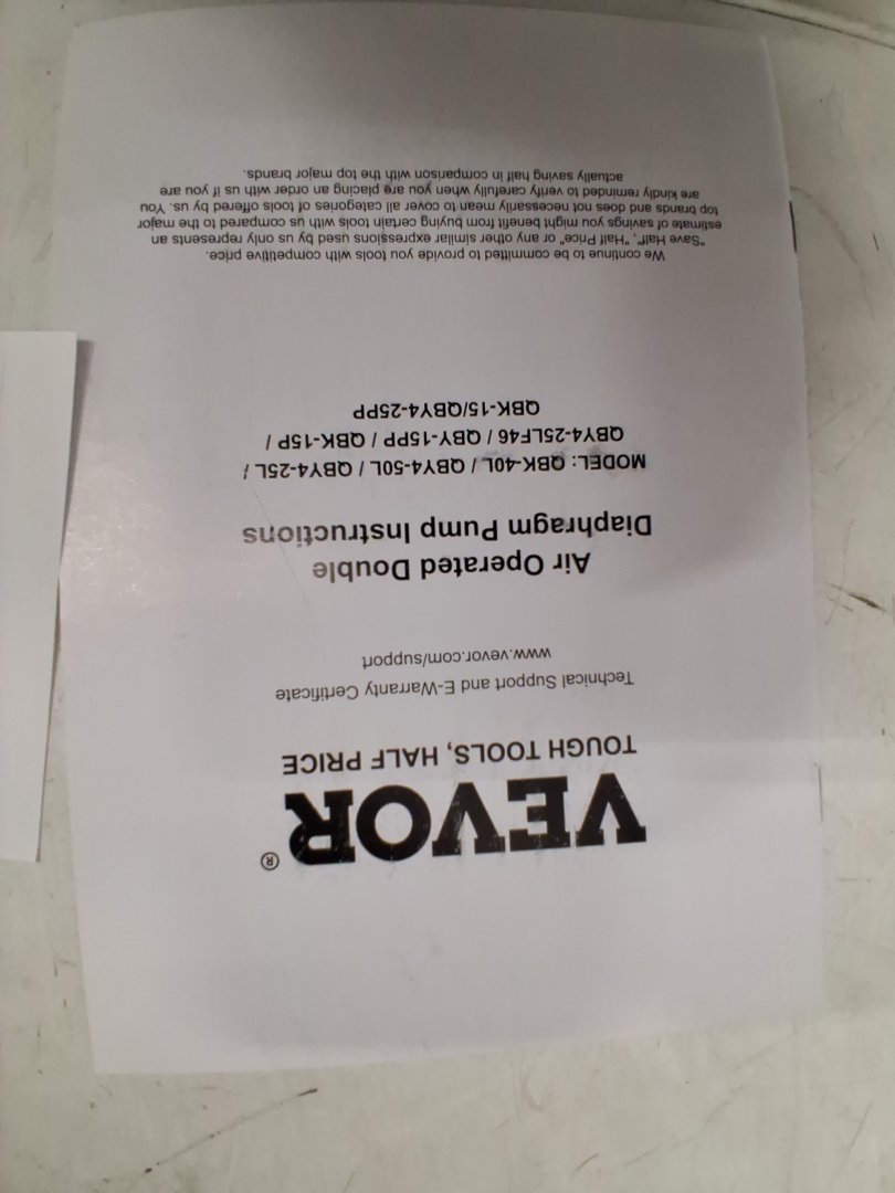 VEVOR AIR OPERATED DOUBLE DIAPHRAGM PUMP, 1" INLET OUTLET FOR CHEMICAL INDUSTRIAL USE, 35 GPM, MAX 120 PSI, BLACK, (MODEL:QBY4-25LF46)