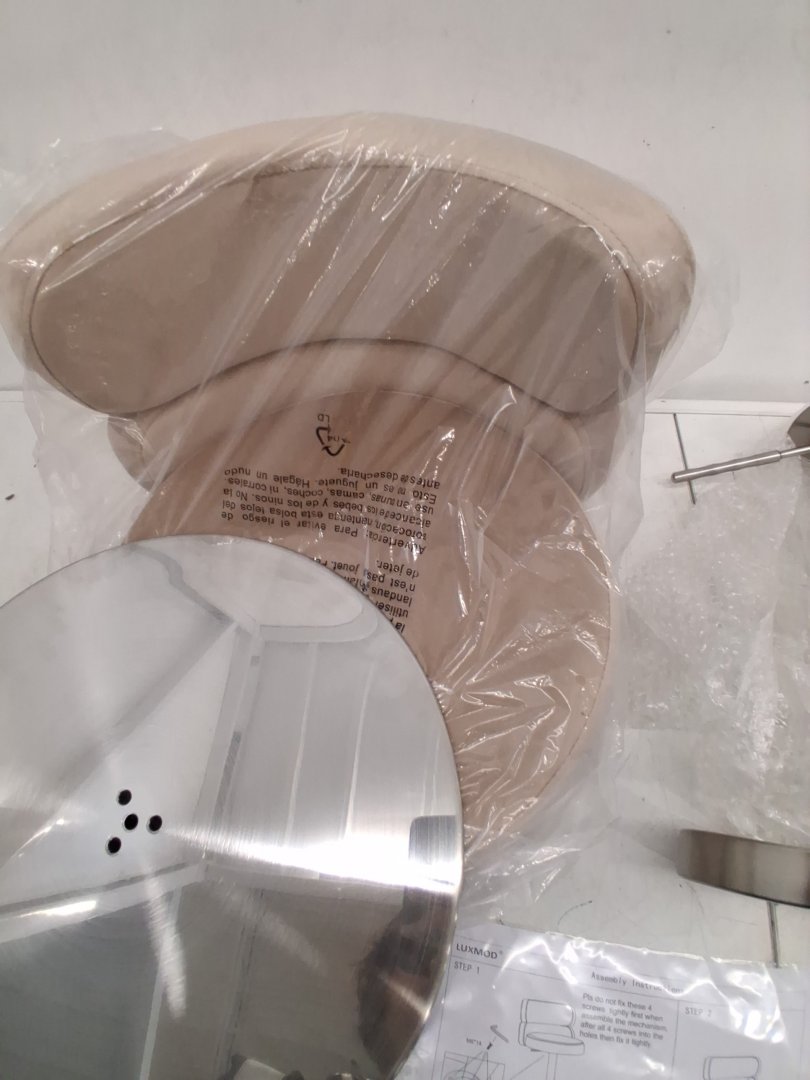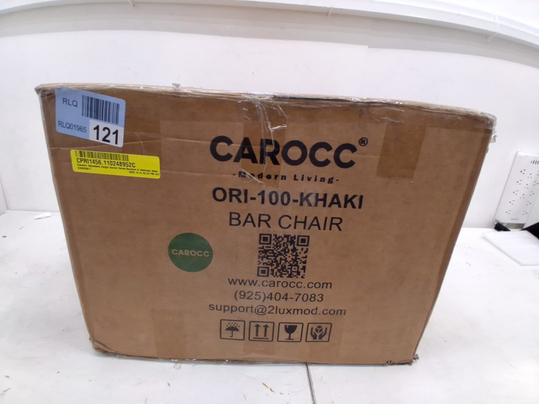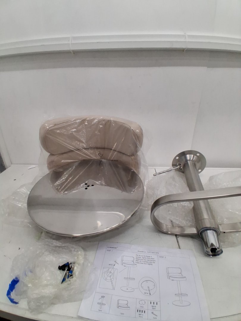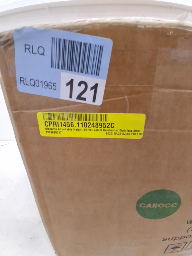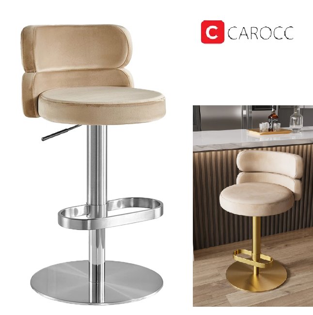 CAROCC Giacamo Adjustable Height Swivel Boucle Fabric Barstool in Stainless Steel - Khaki/Silver - 31.4" (model: ori-100-khaki)