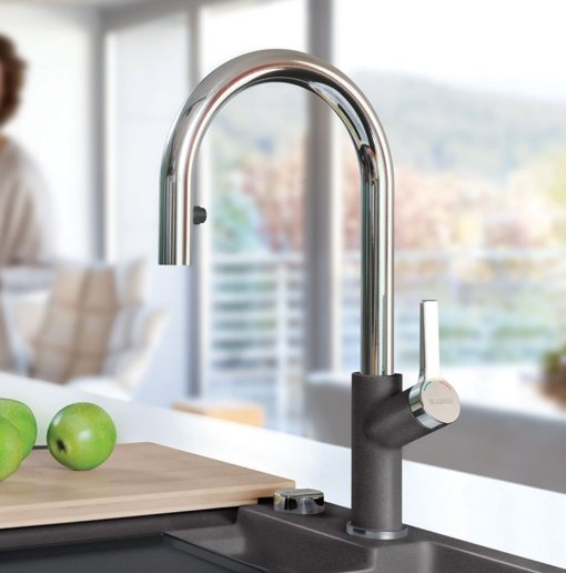blanco urbena dual spray kitchen faucet with hidden hand spray - silver 16.1" x 8" x 9" - silver (model: 526396)