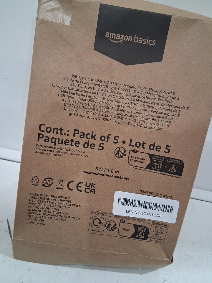 4PK amazon basics usb type c charging cables - 6ft - BLACK