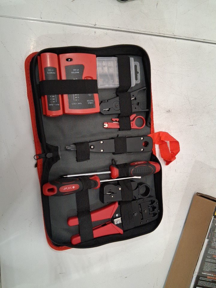 hi-spec network cable testing and wiring tool kit set - red/black - (model: dt30132r/dt30132)