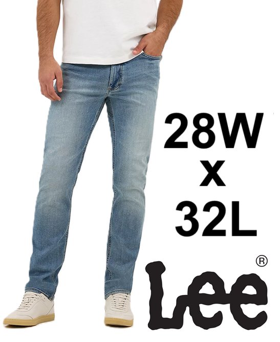 mens lee slim fit jeans - 28w x 32l - ridge (light blue) (style: 130273)