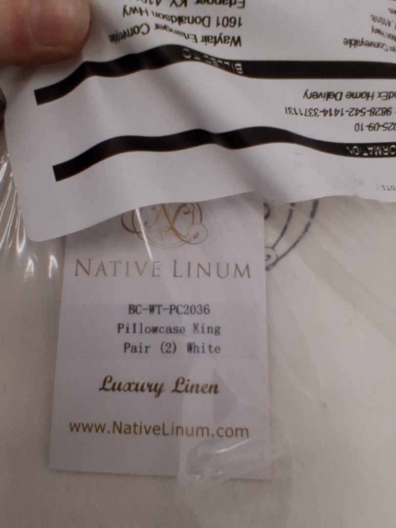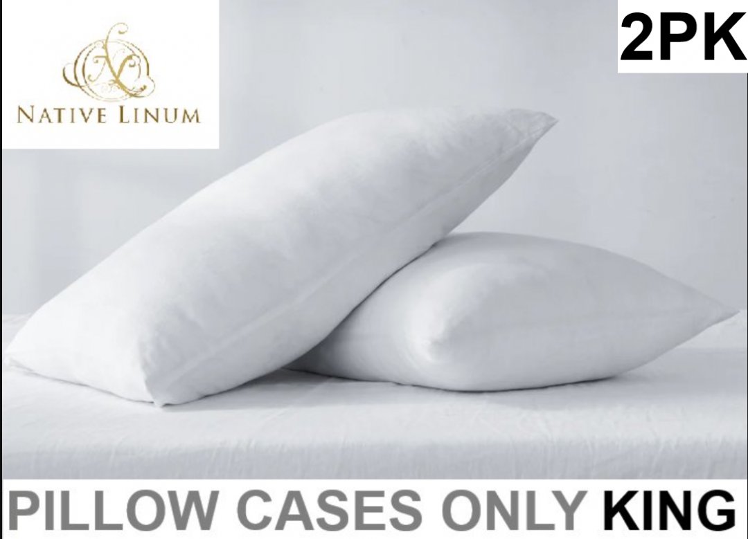 2PK Native Linum Basic LUXURY Linen Pillowcases -KING - WHITE (MODEL: bc-wt-pc2036)