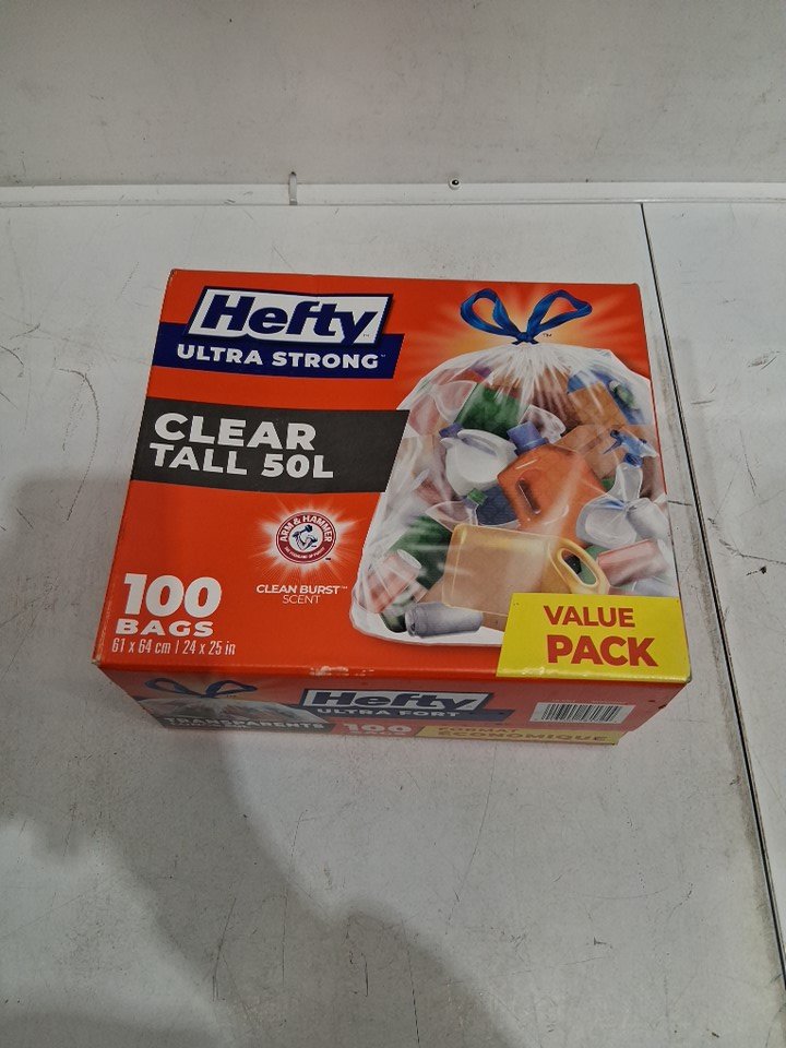 100PK Hefty Ultra Strong Garbage Bags Tall - 50L - clear (model:00E83608)