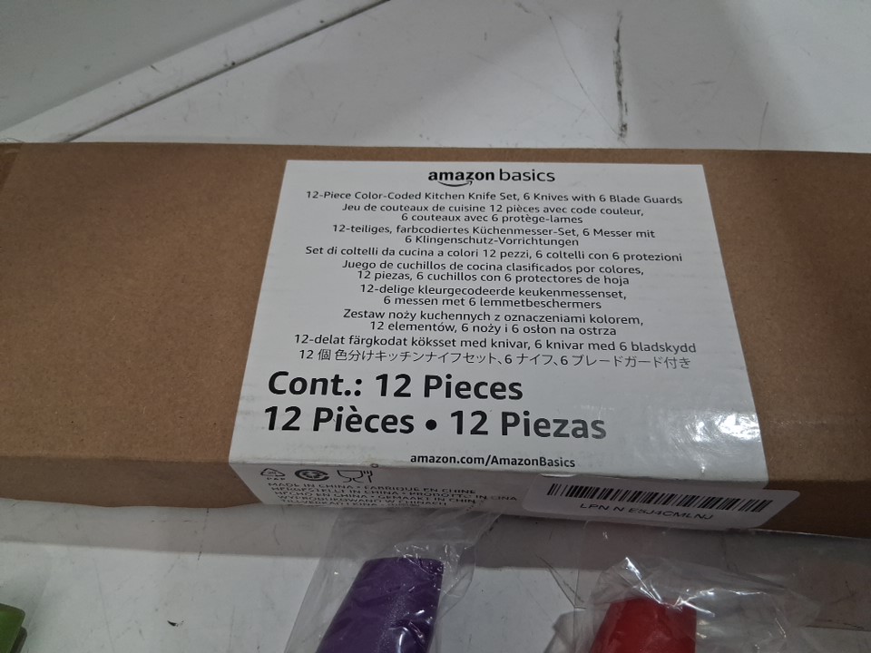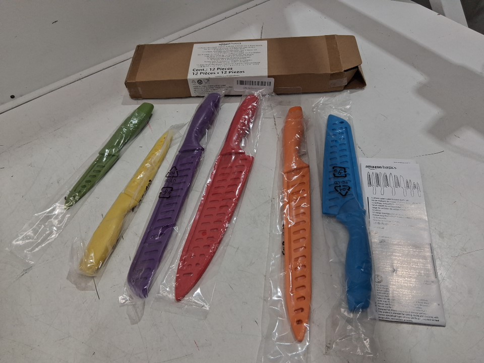 12PC AMAZONBASICS COLOURED KITCHEN KNIFE SET WITH BLADE GUARDS - MULTI (model: P988)