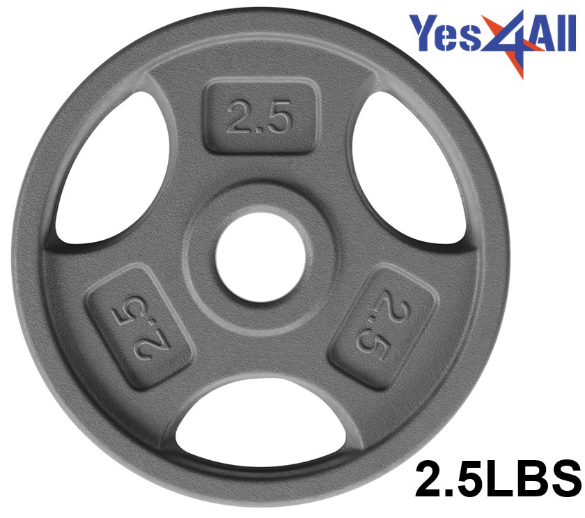 YES4ALL Grip Weight Plate for dumbbells and barbells - 2.5lbs - 1-Inch hole - grey (model: KTKR)