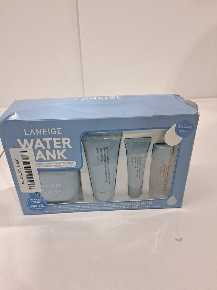 4PC LANEIGE Water Bank Blue Hyaluronic Hydration Set - Cream Moisturizer, tONER, SERUM, AND CLEANSING FOAM - 50ML, 25ML, 10ML, AND 30G