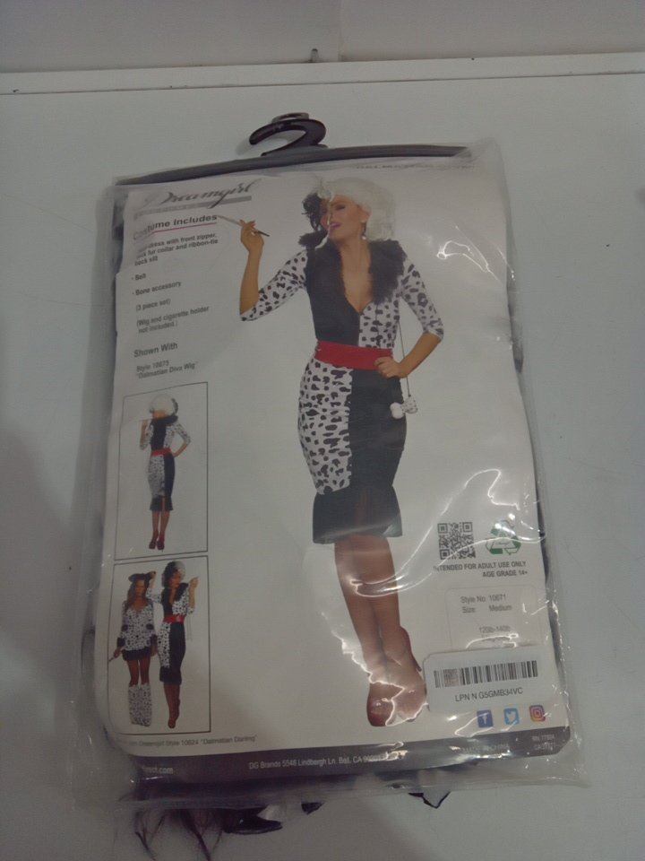 women's dreamgirl dalmatian diva costume set- medium- white/black/red- (model: 10671)