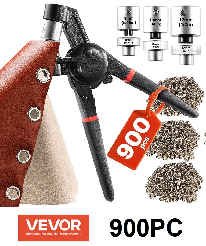 900pc vevor Grommet Tool Kit - assorted size - black/grey (model: 8mm9wp)
