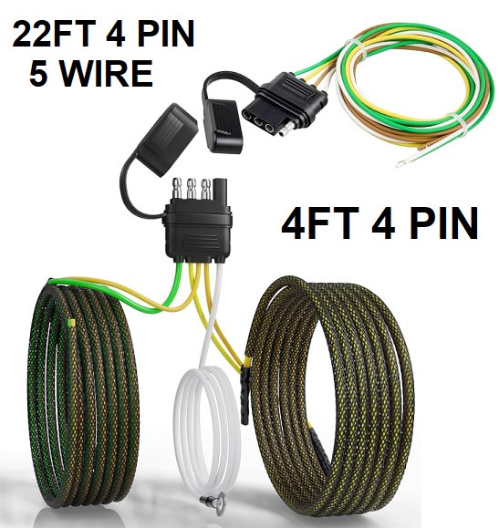 Oyviny 22FT 4 Pin 5 Wire Trailer Wiring Harness + 4FT 4 Pin Flat Female Wire - (model: OV-YH-45T8)