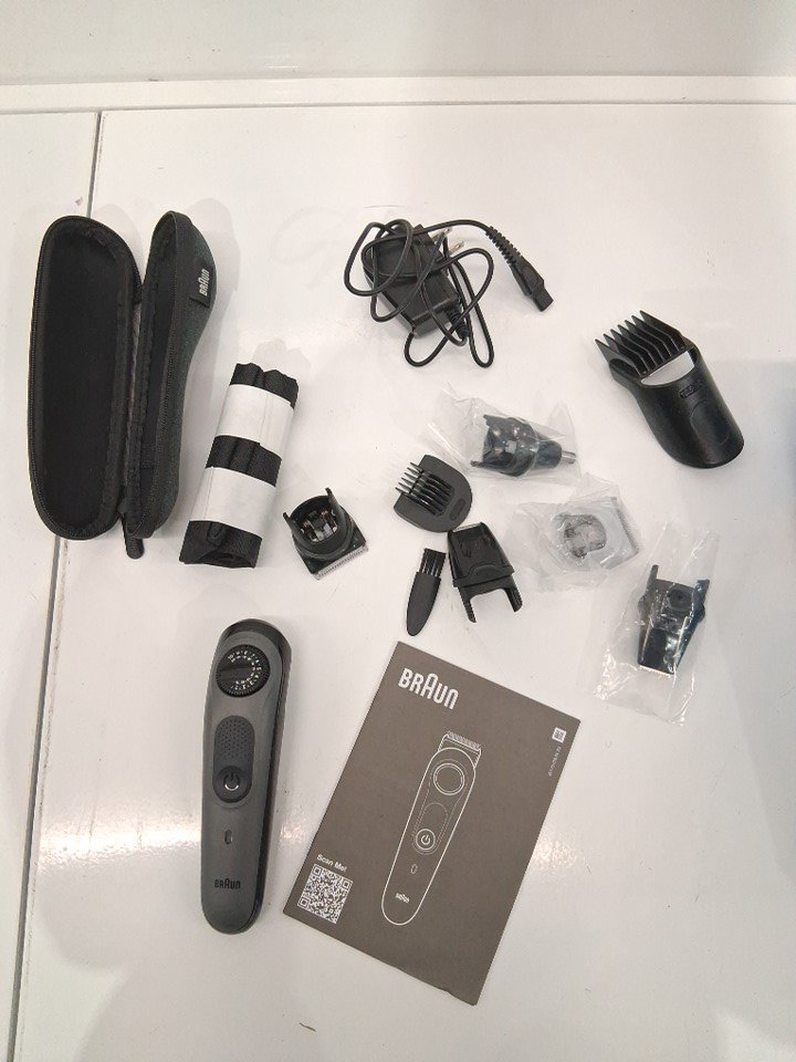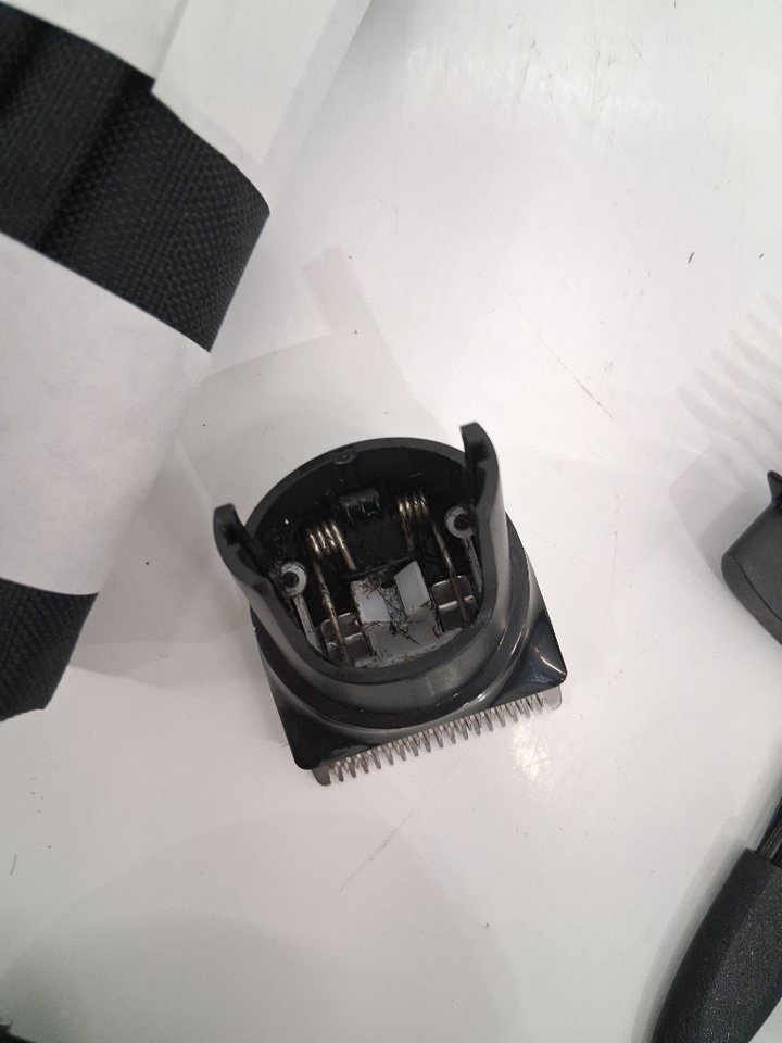 One attachment has some signs of use. Shaver will require full charge prior to use