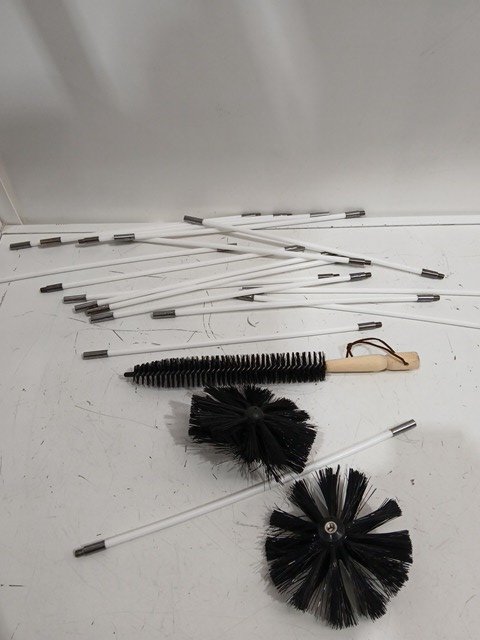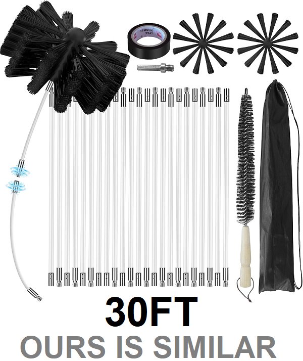 multi-use flexible chimney/fireplace sweeping and brush kit - 30FT - white/black