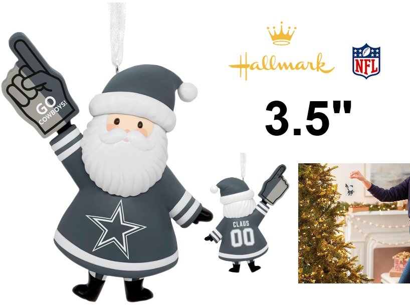 Hallmark NFL Dallas Cowboys Santa Fan Christmas Ornament - 3.5" - blue/grey/white/black