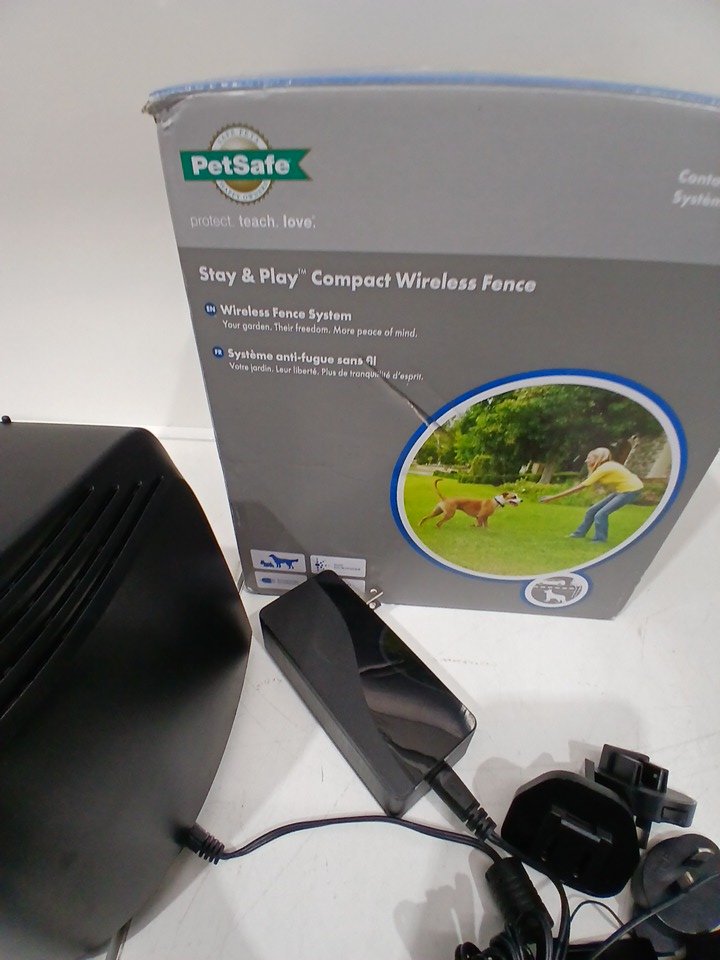 PETSAFE STAY + PLAY WIRELESS FENCE COVERS UP TO 3/4 ACRE FOR DOGS AND CATS OVER 2.3 KG WATERPROOF AND RECHARGEABLE WITH TONE AND STATIC STIMULATION - BLACK (MODEL: PIF17-13478)