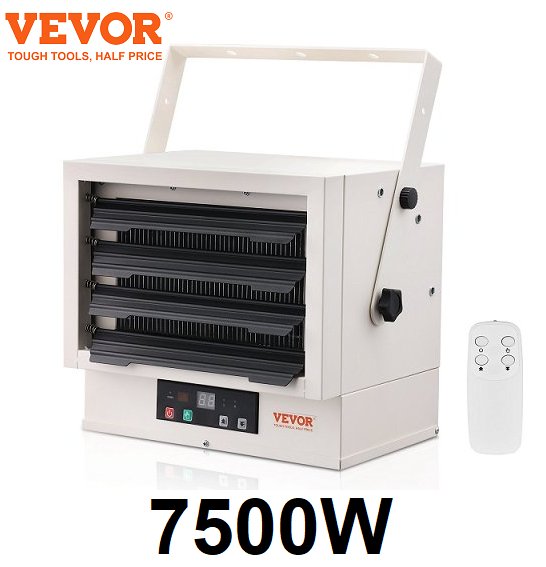 VEVOR Electric Garage Heater with remote control - 7500W - 12.7" x 10.6" x 12.7" - white (model: bgp2102-75r)